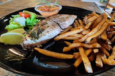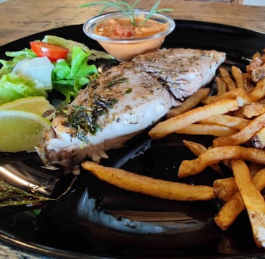 Nuggets Maison filet de poulet frais et frites maison ou Thon à la Groisillonne Dessert