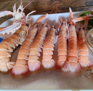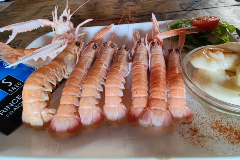 Langoustines de la criée & Mayonnaise au kari Gosse OU Rillettes de poisson à la criste marine de nos côtes OU Cochonnerie Breizh à la découverte du Fars Oaled OU Entrée végétarienne.