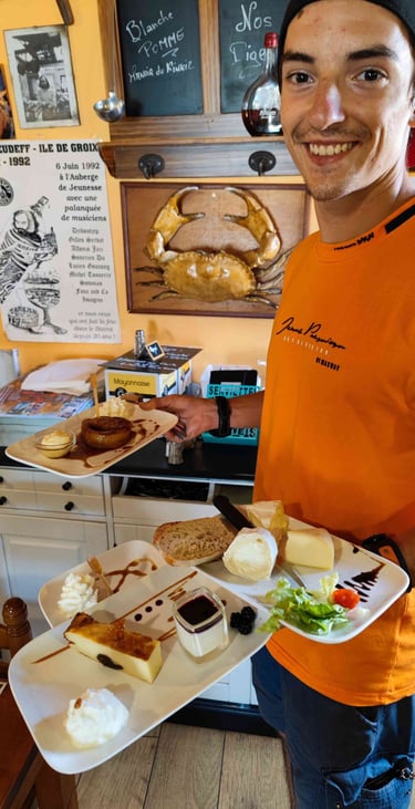 Terminez votre repas avec nos desserts faits maison, un vrai délice breton. Et surtout la spécialité de Groix : Le Tchum Pot (kouign Pot), un gâteau traditionnel cuit au torchon unique en son genre.